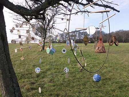 Eine ganze Baumreihe geschmückt mit kleinen Mobiles… hübsch anzuschauen. Da hat sich jemand (vermutlich eine Schulklasse?) wirklich Arbeit gemacht.